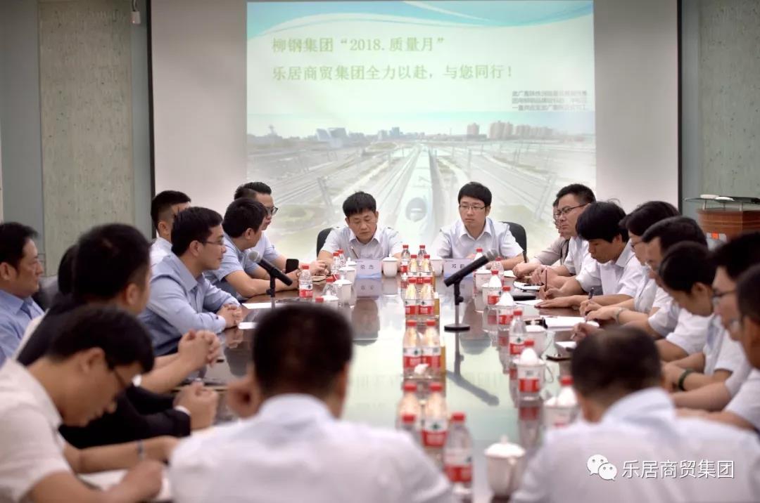 2018年10月11日,柳鋼集團2018·質量月活動中,由柳鋼質量部、經銷公司、技術中心、熱軋廠、中板廠、冷軋廠、棒型廠等組成的走訪團,與中新社、廣西日報、廣西電視臺、柳州日報等媒體記者一同來訪樂居商貿集團。集團總經理馮敏達先生以及集團全體員工對此次來訪表示最熱烈和誠摯的歡迎與接待。此次來訪充分展示了柳鋼集團始終如一地將質量視為企業生命線,這亦是樂居商貿集團在發展過程中始終堅守的核心價值觀——為進一步樹立企業品牌,實現企業高質量發展,我們與柳鋼攜手共進!