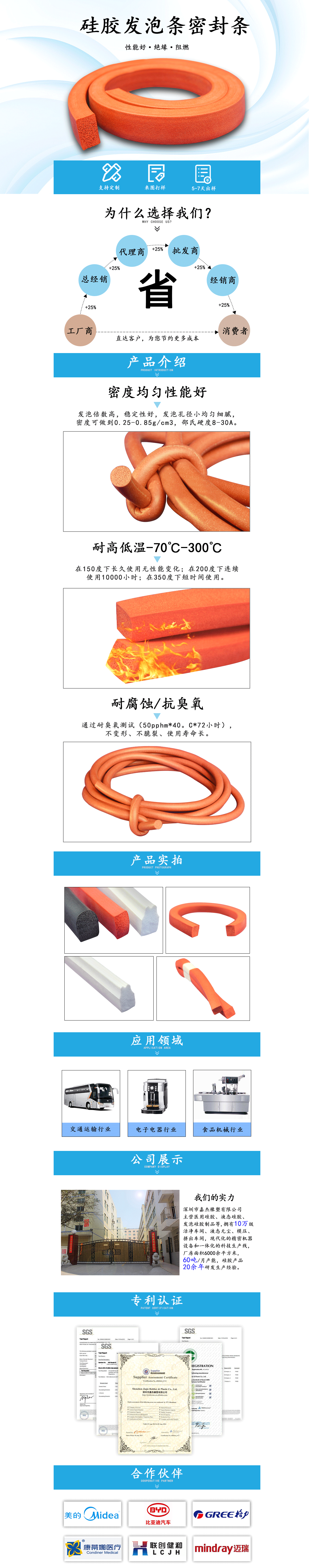 硅膠發(fā)泡密封條參數(shù):