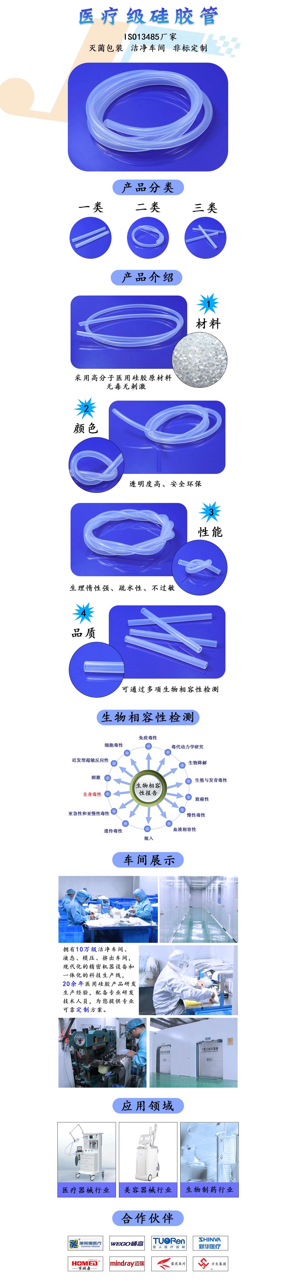 醫(yī)療級鉑金硫化硅膠管廣泛用于醫(yī)療、生物制藥、食品加工、化學(xué)實驗、電子、電器、嬰幼兒用管制品等領(lǐng)域。